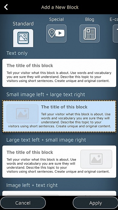 Ova aplikacija za izradu web stranica za Android omogućuje vam da se usredotočite na organiziranje i oblikovanje sadržaja. Iskoristite svoje vrijeme pričajući priču o svom poslovanju, umjesto da učite programirati.
