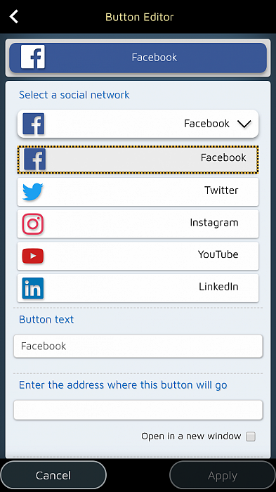 • Vi možete stvoriti gumbe kako biste potaknuli posjetitelje da posjete određenu stranicu na vašoj web-lokaciji, vašu Facebook stranicu ili da vas kontaktiraju putem vaših omiljenih aplikacija za komunikaciju.